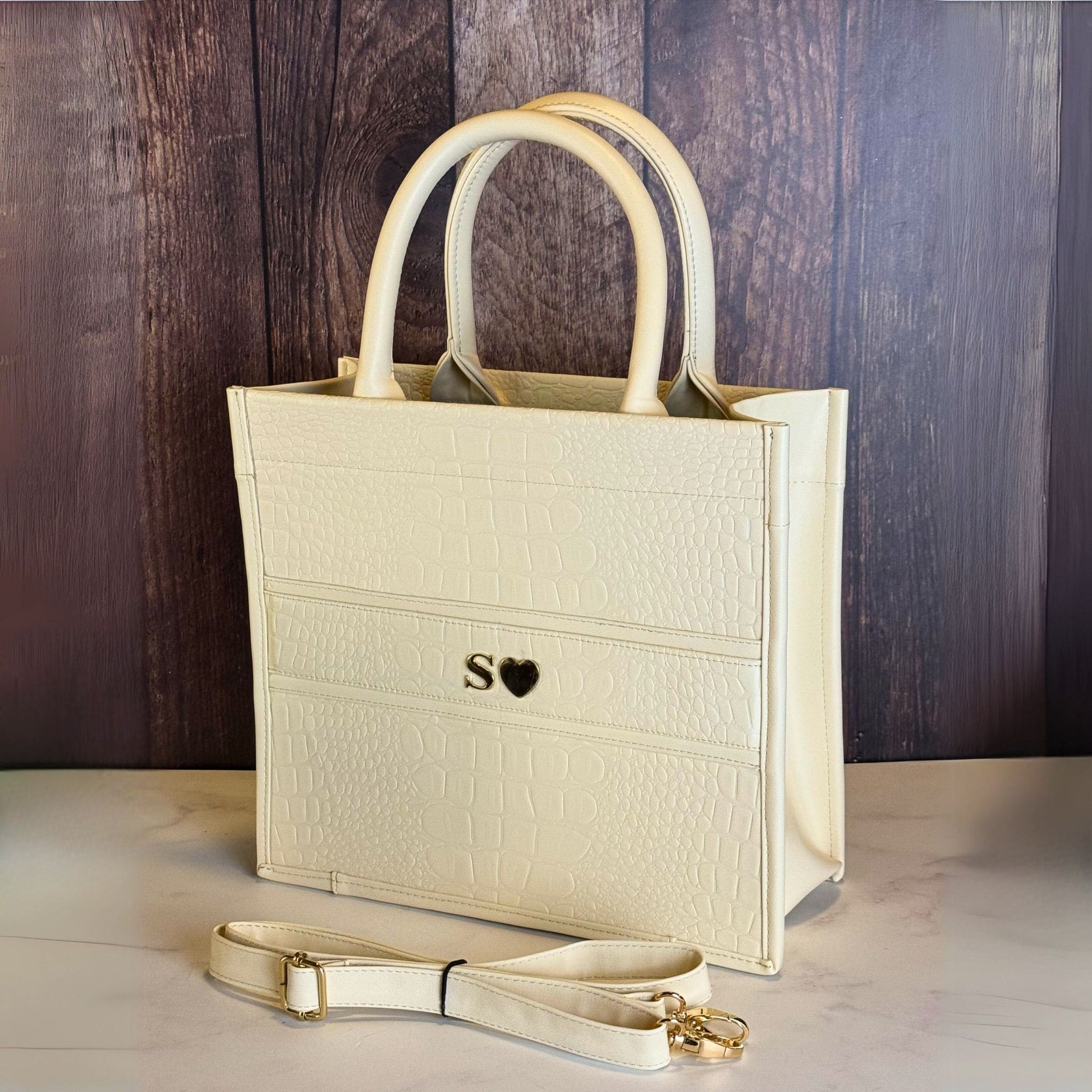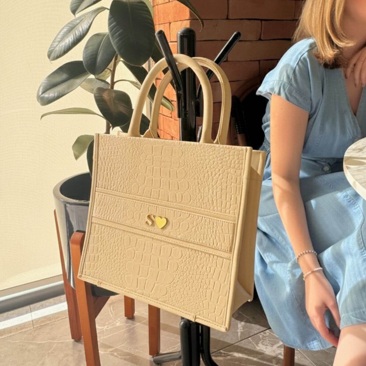 Minimalista, estructurada y con textura tipo croco: una tote que eleva cualquier look y refleja confianza en cada detalle.